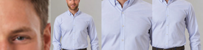 97% cotton/3% elastane. Tailored fit. Button down collar. Contrast inner collar and cuffs. Clear buttons. Back yoke with locker loop. Pleated back panel. Two button adjustable cuffs with button on cuff gauntlet. Curved hem.